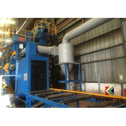 KLH2515-12 roller conveyor shot blasting machine terdiri dari roller konveyor in-feed, sistem shot blasting, sistem penghilang debu, sistem konveyor out-feed dan sistem kelistrikan dan sebagainya. Peralatan ini terutama digunakan untuk melakukan shot blasting pada pelat baja/profil/pipa spool untuk mendapatkan permukaan Sa2.5 yang bersih dengan kekasaran tertentu. Seluruh panjang lini produksi ini adalah 41.5mtr.s. Itu dikendalikan oleh PLC.