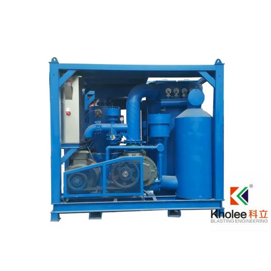 Sistem pemulihan vakum dirancang untuk memulihkan bahan abrasif bekas yang dapat didaur ulang dari area peledakan ke dalam silo untuk selanjutnya dikembalikan ke peralatan pembersih ledakan atau, dalam kasus bahan abrasif yang dapat dibuang, untuk dibuang ke hopper limbah. Setelah menyimpan bahan abrasif ke dalam silo, aliran vakum yang mengandung udara dan debu berlanjut ke unit penghisap, di mana partikel debu dalam aliran ini dihilangkan dengan kartrid filter kinerja tinggi sebelum membuang udara ke atmosfer.