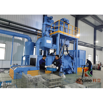 O equipamento é composto de transportador de rolos de alimentação, correia de malha de arame Mn13, câmara de jateamento, rodas de jateamento, sistema de reciclagem de abrasivos, sistema de limpeza de tiros, sistema de remoção de poeira, transportador de rolos de saída e sistema de controle elétrico, etc.